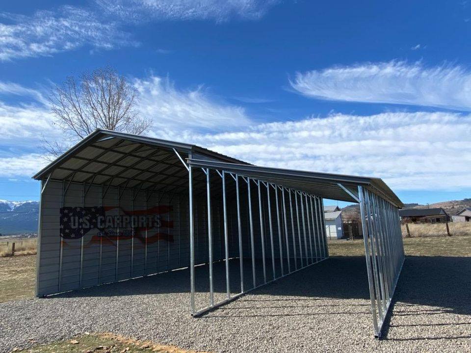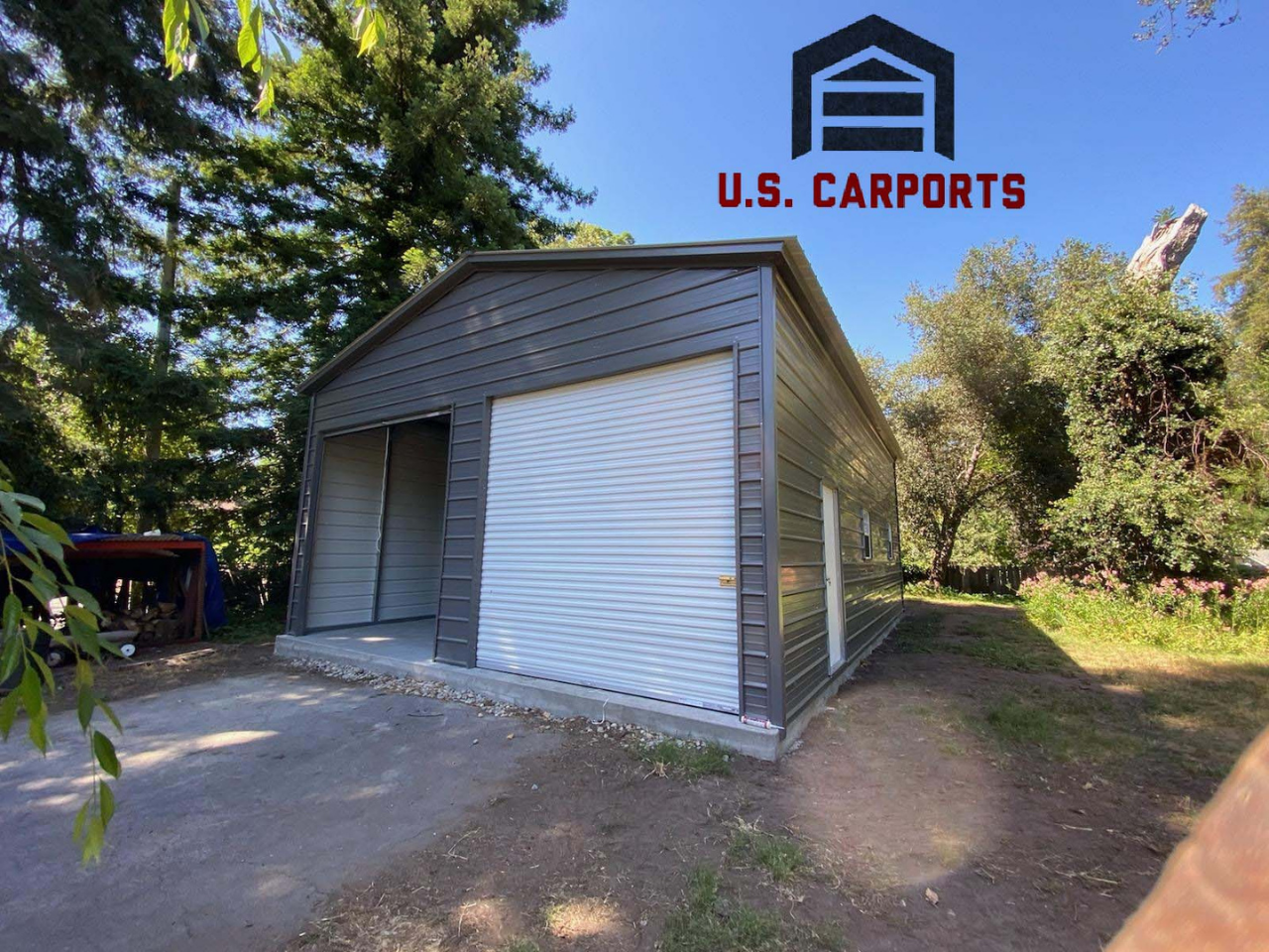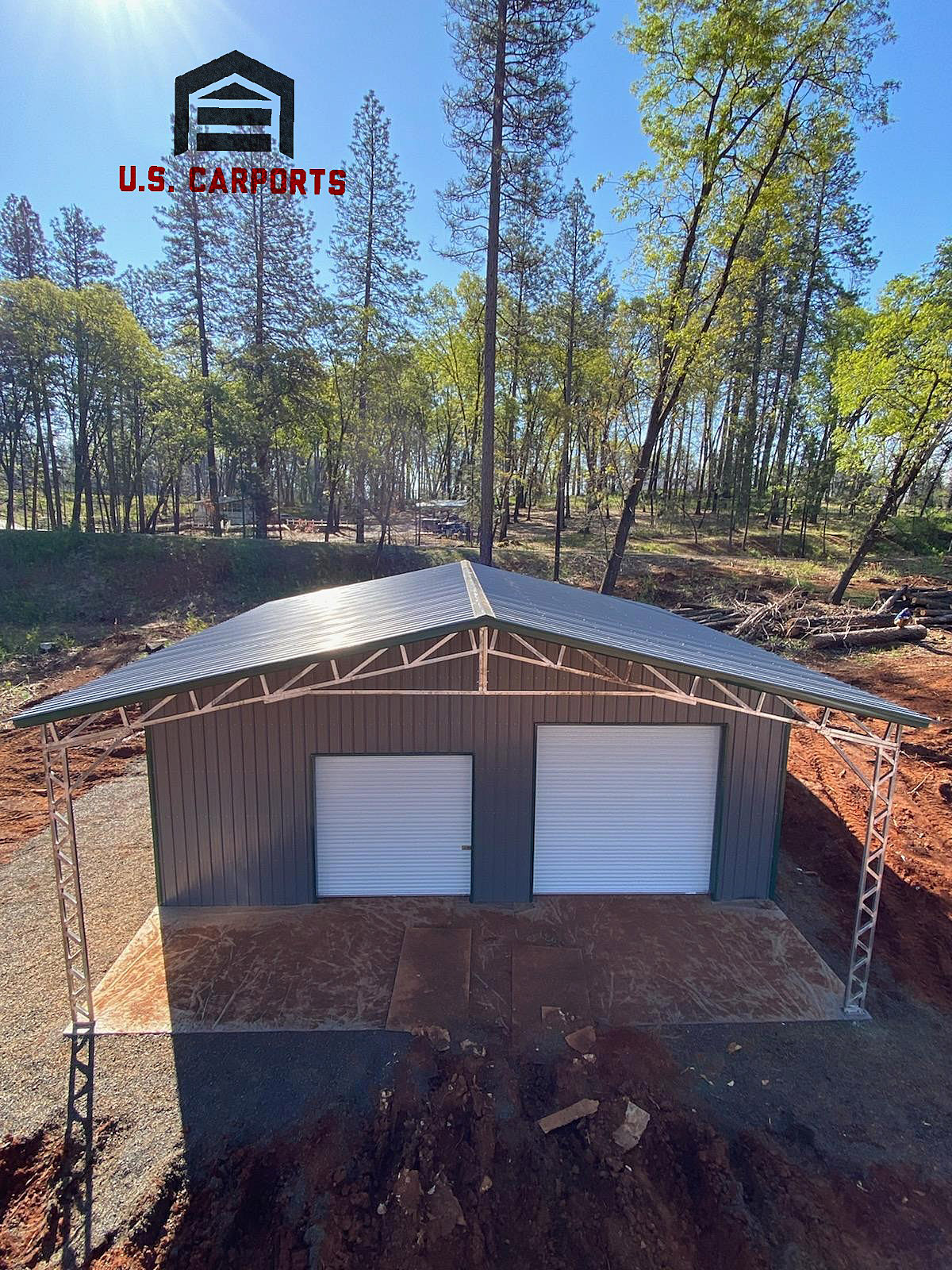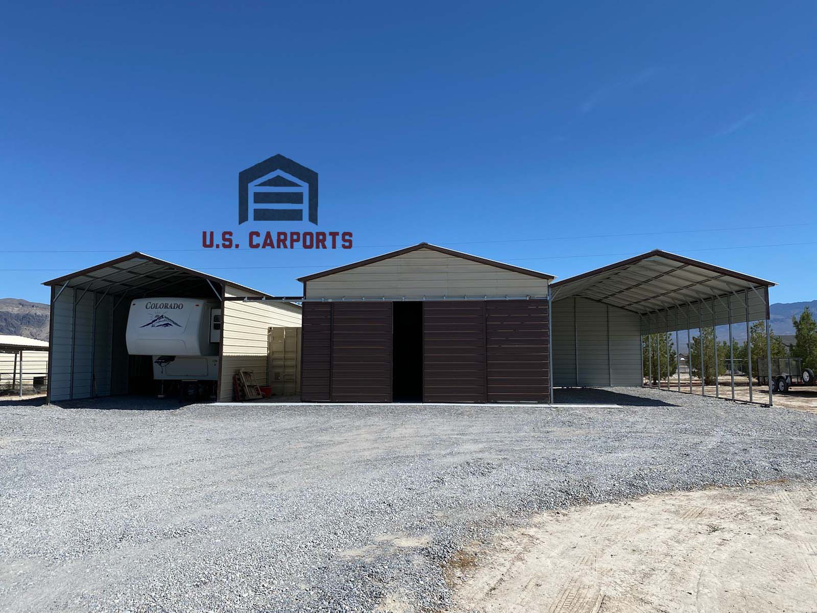 Protect your vehicles and valuables in a solid cost-effective steel garage, U.S. Carports works with the best steel manufacturers in Nevada, California, and Oregon. All structures are shipped and installed by experienced installers. A regular style metal garage is the most economical option available and is great in areas that don’t get heavy snow load or lots of rains.