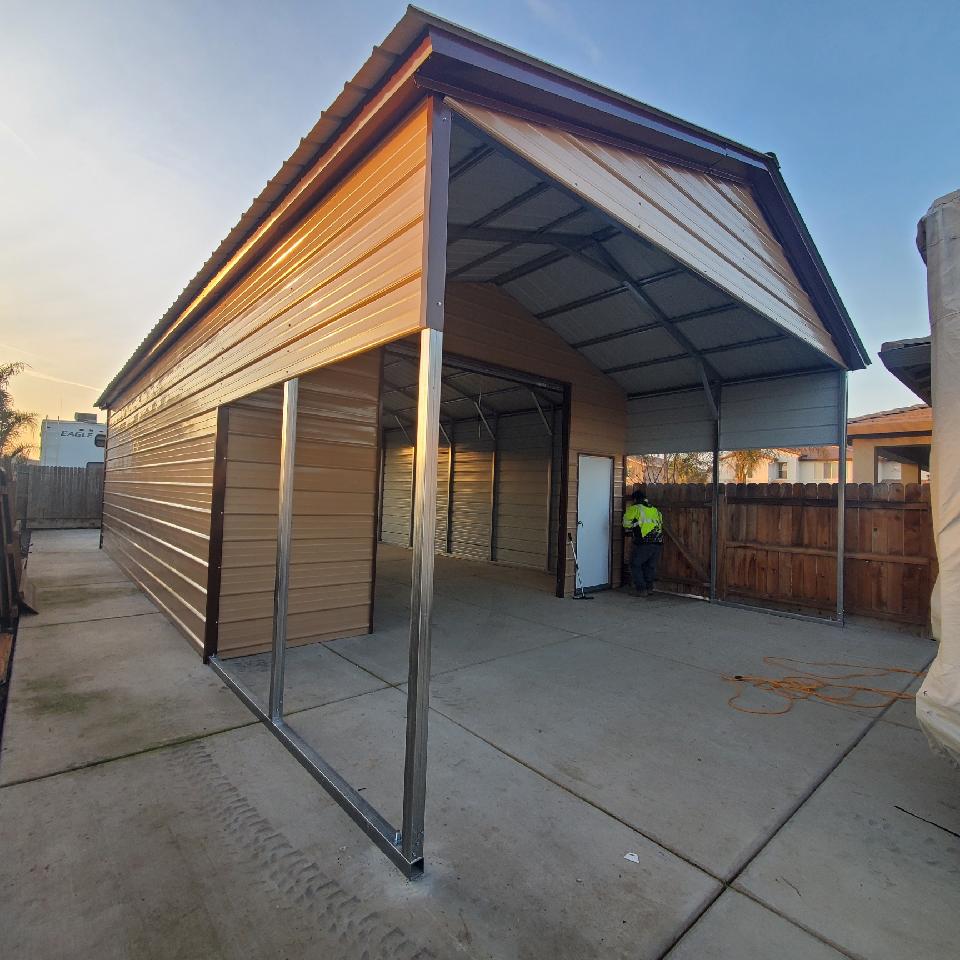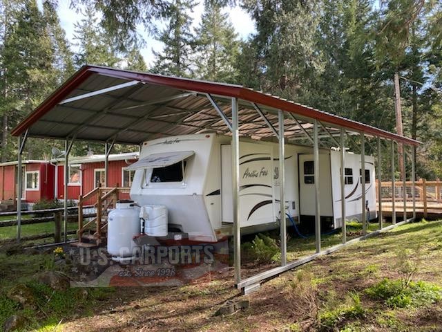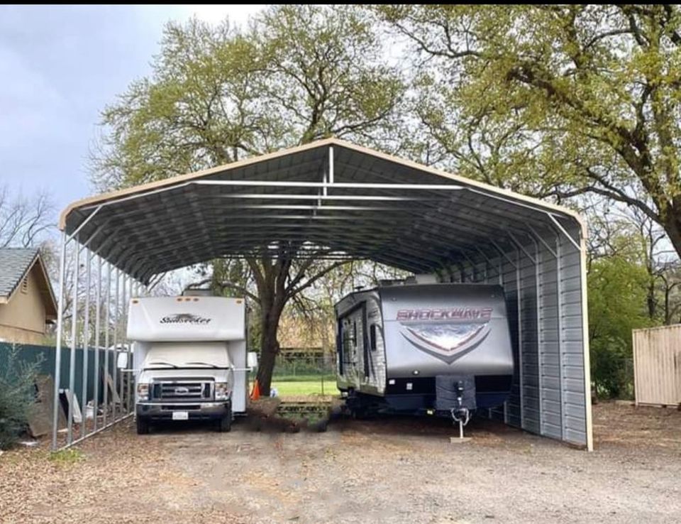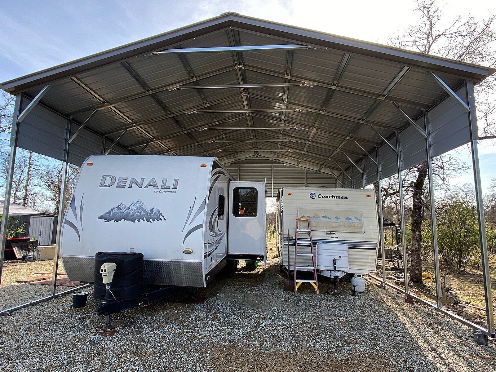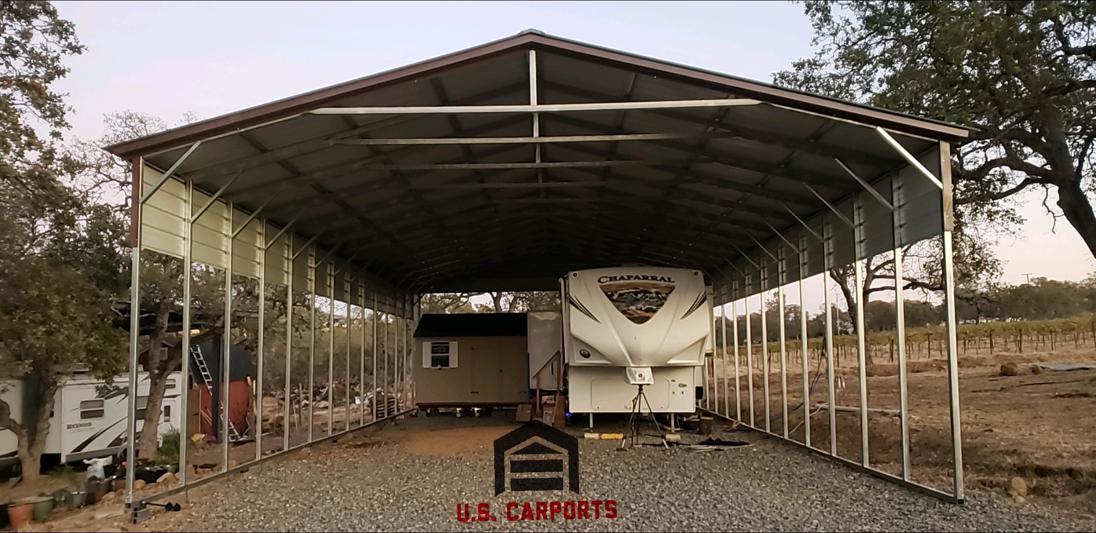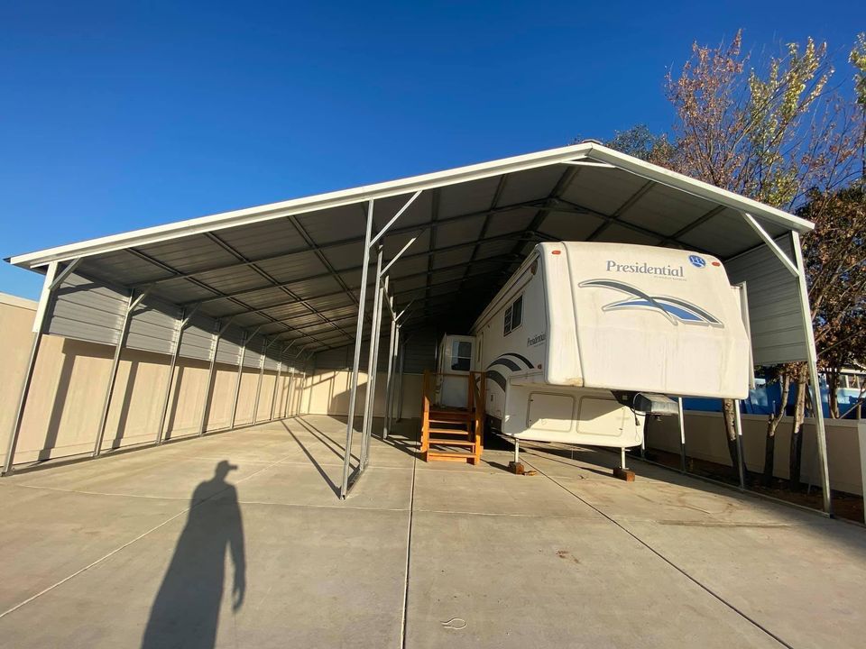 RV CARPORTSOur metal RV Carports can shield your vehicles and equipment from the elements, but they’re also useful as covered picnic areas or protected our door studios. We can also attach some enclosed utility storage space, according to your needs. Click here to see a sampling of our many available metal RV Carport options.